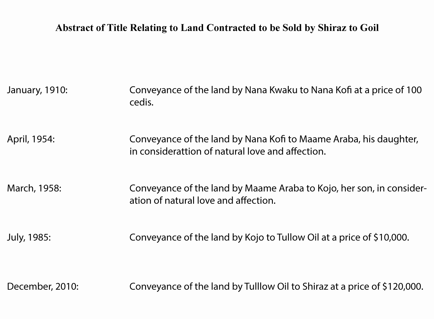 In the case of Joseph v. Boakye [1977] 2 GLR 392, the court characterised an abstract of title as follows: